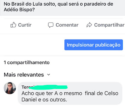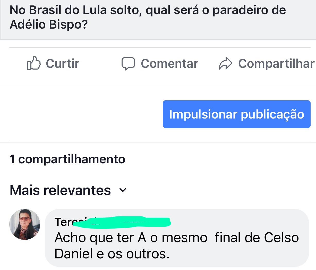 Achamos postagens na internet na qual dizem que Adélio pode ter o mesmo fim de Celso Daniel e outros.