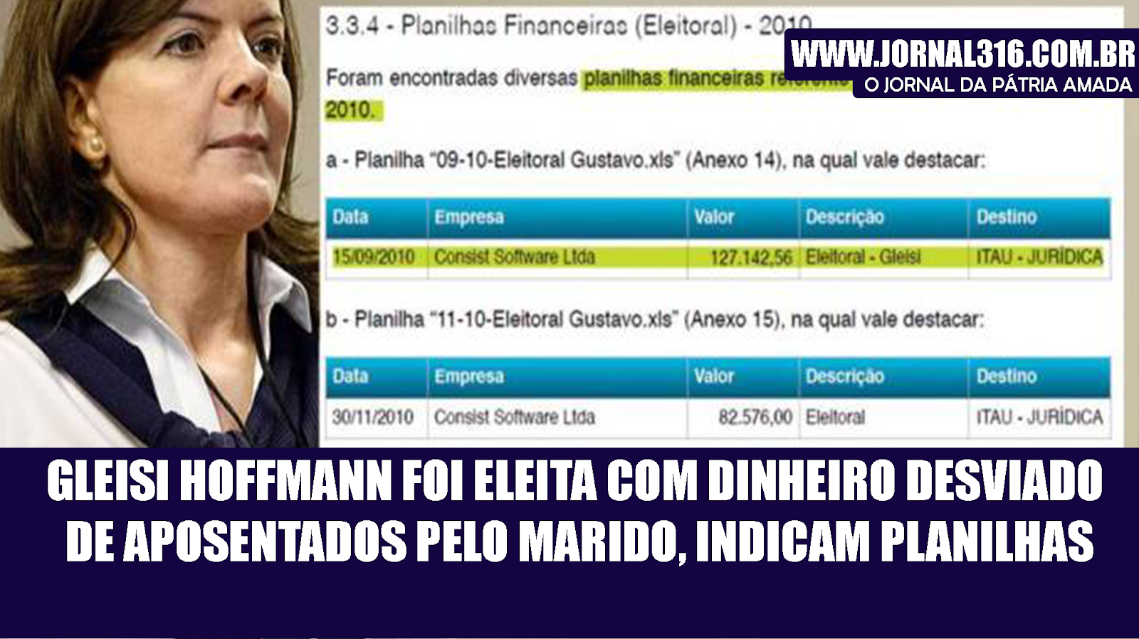 A petista foi eleita a senadora mais bem votada do Paraná, e caro com o dinheiro desviado de aposentados como diz a planilha. Com dinheiro sujo arrecadado pelo seu marido Paulo Bernardo, é foi assim que Gleisi foi senadora mais bem votada.