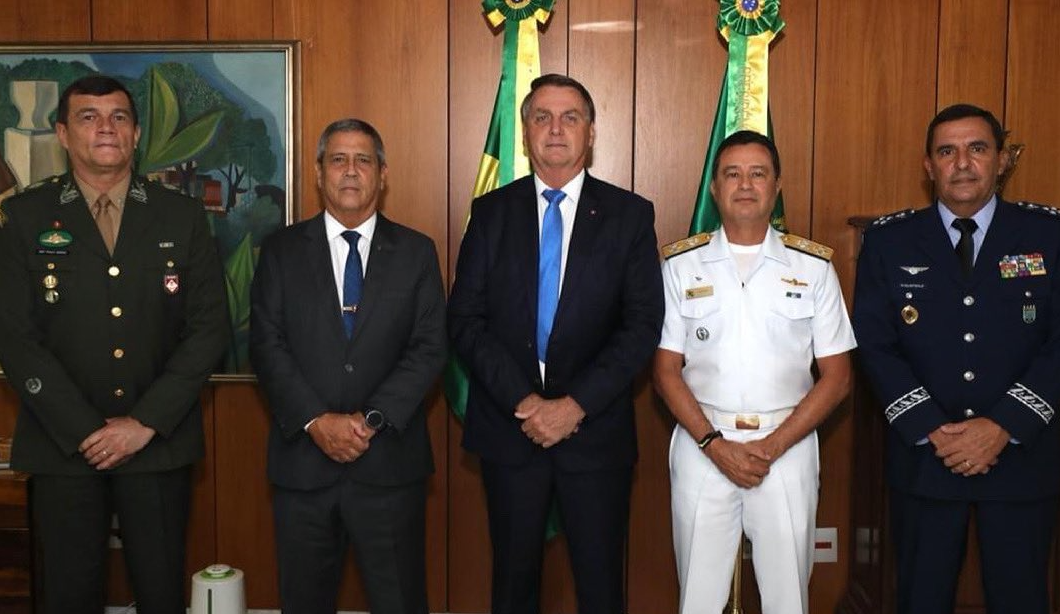 Nesta quarta-feira (31), o novo Ministro da Defesa, Walter Braga Netto, apresentou os novos Comandantes das Forças Armadas. São eles: Almirante de Esquadra Almir Garnier Santos, Comandante da Marinha do Brasil; General de Exército Paulo Sérgio Nogueira de Oliveira, Comandante do Exército Brasileiro; e Tenente-Brigadeiro do Ar Carlos de Almeida Baptista Júnior, Comandante da Força Aérea Brasileira.